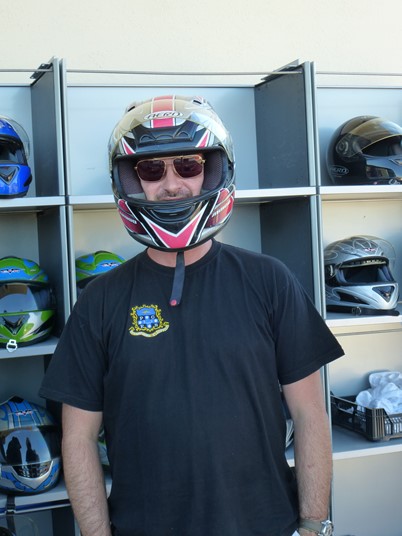 Francisco Franco, con casco..ha resucitado de la resaca para esta carrera.