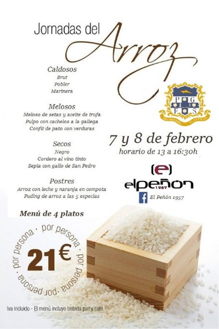 Convocamos una “Jornada Extraordinaria” para el próximo Domingo 8 de Febrero en “El Peñon” para degustar las “Jornadas del Arroz” que nuestro amado compañero organiza en su estupendo local